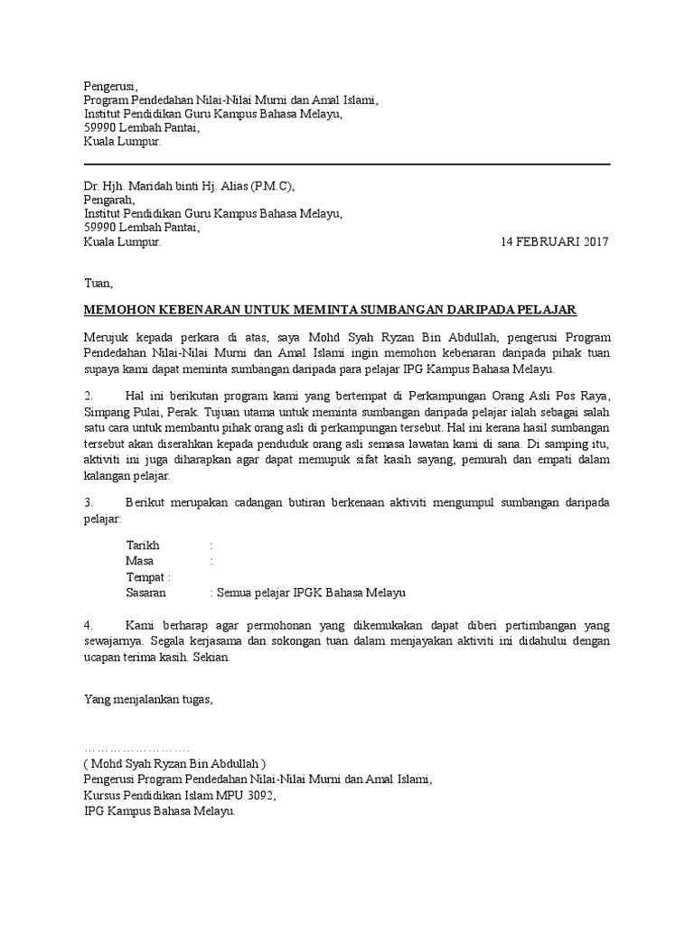 Contoh Surat Memohon Kebenaran Mengadakan Big Kepada Pengarah Pdf